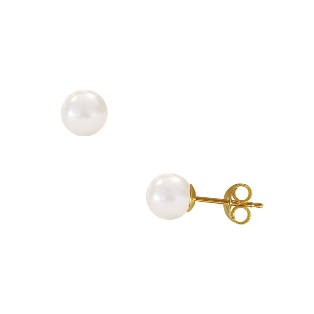 Καρφωτά μαργαριταρένια σκουλαρίκια Akoya Ιαπωνίας σε λευκό χρώμα με κούμπωμα από κίτρινο χρυσό 14 καρατίων. Υπάρχουν σε διάφορα μεγέθη με διάμετρο 4×4,5 χιλ., 5×5,5χιλ. και 5,5×6χιλ., 6×6,5χιλ. για να επιλέξετε. Τα Μαργαριτάρια Akoya Ιαπωνίας παράγονται από το στρείδι Akoya Pearl Oyster που βρίσκεται κυρίως στην Ιαπωνία και στις τροπικές ζώνες της Νοτιανατολικής Ασίας. Είναι λαμπερά και το χρώμα τους ποικίλει μεταξύ λευκού, ασήμι και κρέμ. Τα μαργαριταρένια σκουλαρίκια Akoya είναι ένα κόσμημα κλασικό που ταιριάζει στο στυλ κάθε γυναίκας.
