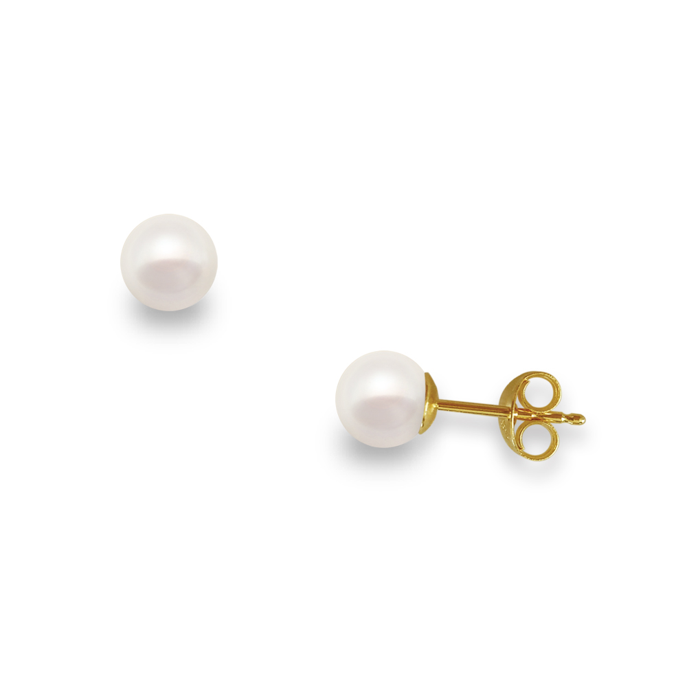 Καρφωτά μαργαριταρένια σκουλαρίκια Akoya Ιαπωνίας σε λευκό χρώμα με κούμπωμα από κίτρινο χρυσό 14 καρατίων. Υπάρχουν σε διάφορα μεγέθη με διάμετρο 6,5×7χιλ., 7,5×8χιλ., 8,5×9 και 9×9,5χιλ. για να επιλέξετε. Τα Μαργαριτάρια Akoya Ιαπωνίας παράγονται από το στρείδι Akoya Pearl Oyster που βρίσκεται κυρίως στην Ιαπωνία και στις τροπικές ζώνες της Νοτιανατολικής Ασίας. Είναι λαμπερά και το χρώμα τους ποικίλει μεταξύ λευκού, ασήμι και κρέμ. Τα μαργαριταρένια σκουλαρίκια Akoya είναι ένα κόσμημα κλασικό που ταιριάζει στο στυλ κάθε γυναίκας.