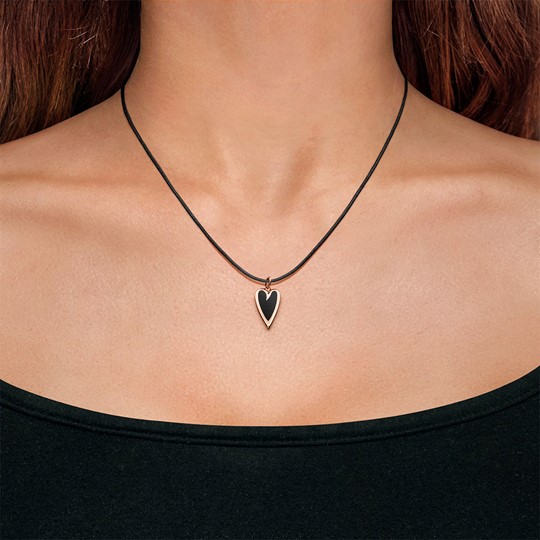Μενταγιόν καρδιά (Nina Heart) με μαύρο κορδονάκι από τη συλλογή Very Gavello σε ροζ χρυσό 9 καρατίων. Το μέγεθος που διαθέτουμε είναι small και extra small. Το μαύρο χρώμα στο εσωτερικό του οφείλεται στη μαύρη essenza, ένα ιταλικό πέτρωμα. Τα Very Gavello είναι χειροποίητα Ιταλικά κοσμήματα μοναδικής αισθητικής.